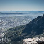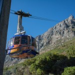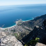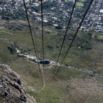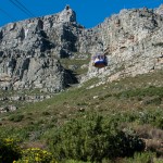 Our morning started with a stop at Table Mountain. Fortunately the winds were low and the cableway was open. After a 30-minute wait in queue to buy a ticket we were off to the next queue to get onto the cable car. The main feature of Table Mountain is the level plateau approximately 3 kilometres (2 mi) from side to side, edged by impressive cliffs. Two of the pictures detail the specifics of the cableway. The views in all directions  were absolutely fabulous (see some examples). The car turns 360 degrees on its way up and down.