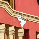 From Table Mountain we traveled to the picturesque Malay Quarter of Cape Town on Signal Hill. The area is also called the Bo-Kaap. The residents’ homes are, as you can see, very brightly colored. I ask you, is the paint chipping image (recognize it? – Hint it is one of the continents.) accidental or planned? (No, I did not scrape away any of the paint.) The residents of this area are primarily Muslim. The Mosque was just down the street from the pictured homes.