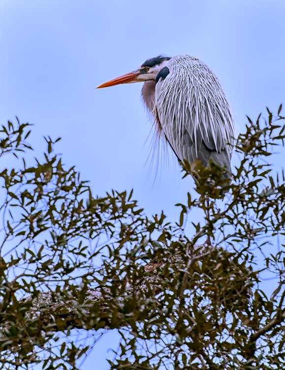 Blue Heron in a tree staying warm